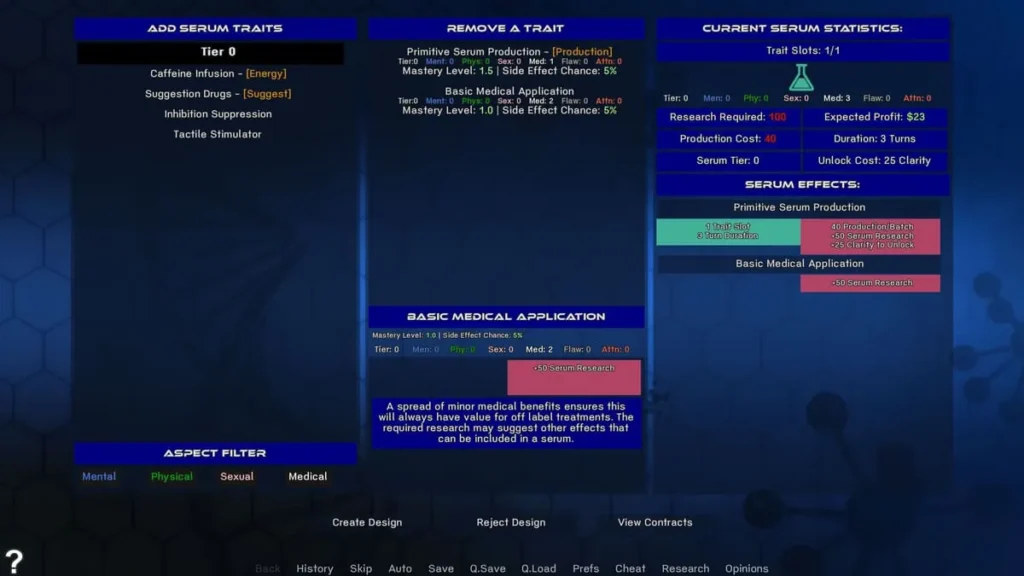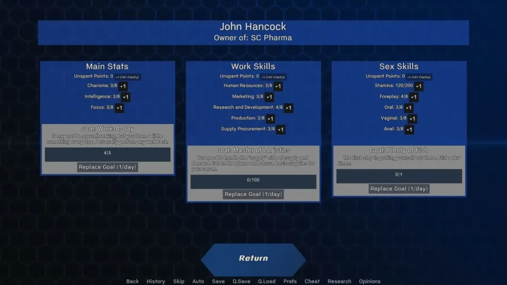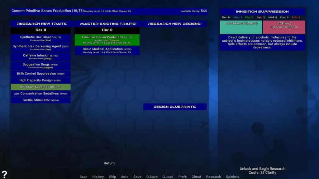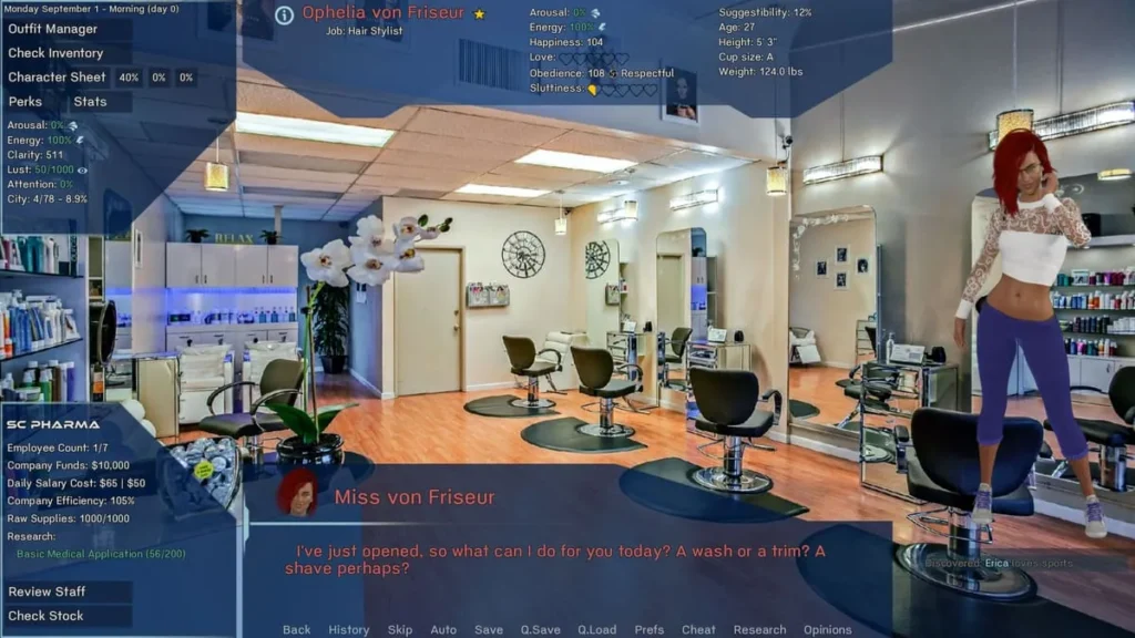 - Serum Crafting & Research: 🔬 The classic management sim pillar, focused on developing new formulas that unlock story events and character transformations.