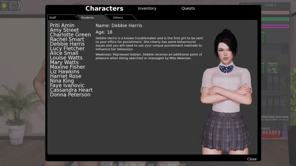 At its core, The Headmaster game places you in charge of a troubled private school for girls. The previous administration let standards slip into anarchy, and it’s your job to clean up the mess. You are the new headmaster, and your authority is final. 🏛️ The premise is simple but powerful: you must use your position to manage student behavior, interact with a quirky staff, and complete various objectives to progress the story and unlock new areas of the school and its surrounding town.
